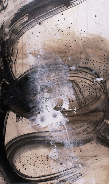 the flow and currents of the spatters and washes, creating a freeze-frame of
